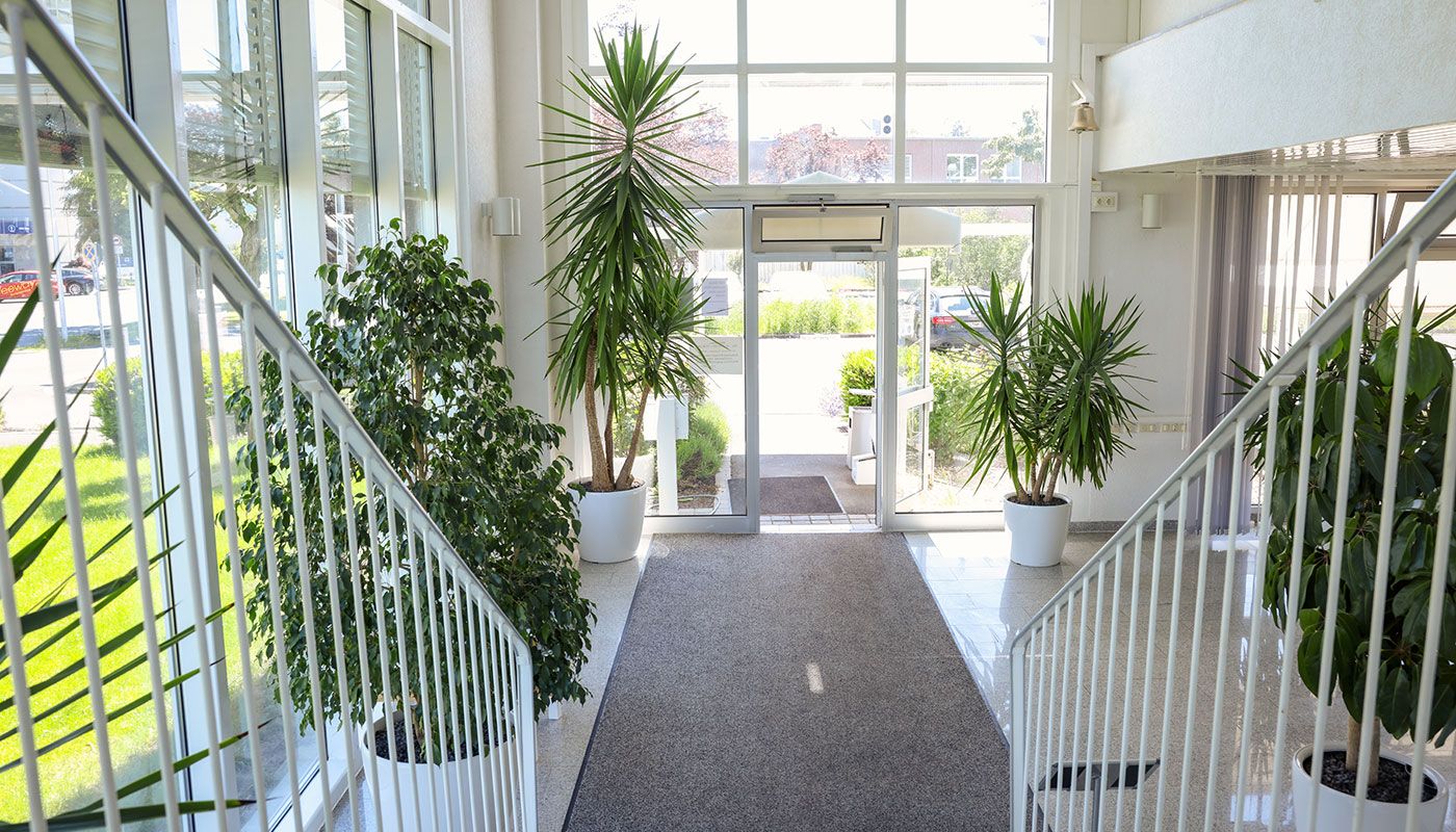 Ein gepflegtes Areal erzeugt ein positives Ambiente, das sich auch in den Leistungen von Teams und Mitarbeitern wiederspiegelt. Insektenhotels und Outdoor-Fitness-Parcours sind genauso selbstverständlich wie eine zielführende Geländeausschilderung sowie ausreichend Parkplätze für Mitarbeiter und Besucher. Ladestationen für Elektroautos sind in Planung.