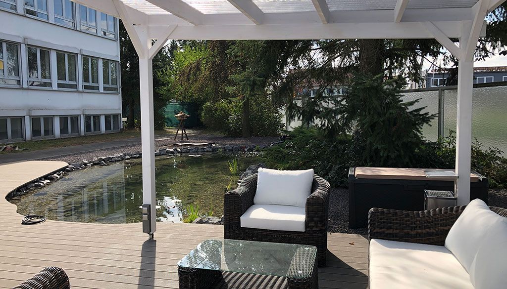 Eine ansprechende Atmosphäre im Outdoor-Bereich ist ebenso wichtig wie das Raumklima in den Gebäuden. Dafür sorgen Raumklimageräte und Outdoor-Lounges mit bester WLAN-Verbindung.